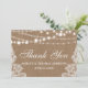Rustic Wedding Burlap String Lights Lace Thank You Card