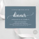 Mark the beginning of your forever with elegance using our contemporary-themed wedding elopement celebration invitation card, "Happily Ever After Dinner". Perfect for couples extending their joyous occasion, this invitation exudes sophistication with a hint of playfulness, setting the stage for a memorable event. Adorned with a timeless dusty blue theme, it adds a touch of refined charm to your festivities. Crafted by TeeshaDerrick, this invitation promises to beautifully capture your love story.