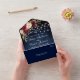 Rustic Wedding Floral Blue Wood Lights Lace All In One Invitation