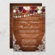 Rustic Wood Lace Lights Burgundy Watercolor Floral Wedding Invitation