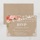 Rustic Wedding String Lights Lace Watercolor Coral Floral RSVP Kraft Card