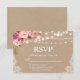 Rustic Wedding String Lights Lace Watercolor Pink Blush Floral RSVP Kraft Card