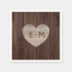RUSTIC WEDDING NAPKINS CARVED HEART INITIALS LOVE