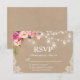 Rustic Wedding String Lights Mason Jars Lace Watercolor Pink Blush Floral RSVP Kraft Card