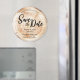 Capture the rustic charm of a wood slice without using real wood with our Rustic Wedding Save the Date Faux Wood Slice Magnet. This unique magnet provides the effect of a wood slice with tree rings, perfect for adding a touch of nature-inspired elegance to your wedding announcements.
