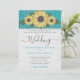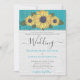 Rustic Wedding Sunflower Yellow Teal Grey Wood Invitation