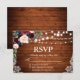 Rustic Wedding Wood Burgundy Blue Floral RSVP Card