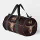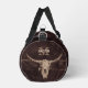 This rustic country bull skull duffel bag features a trendy western cowboy old texture grunge monogram. Customize this cool brown beige farmhouse inspired wild west antique style design. Modern vintage farm animal. Image copyright Marg Seregelyi Photography.