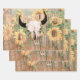 Rustic Western Bull Skull Brown Yellow Sunflowers Wrapping Paper Sheet