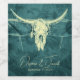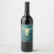 Rustic Western Dark Teal Sunflowers Bull Skull Wine Label