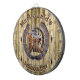 A rustic western wooden barn door cowboy saloon bar, with a lucky horse shoe, wagon wheel and cowboy boots perfect for ranchers and cowboys to add their name to.