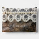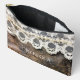 Delightfully rustic, large western style cosmetic and toiletry bag has a dark tooled leather background and a faux antique lace panel with a row of applied pearls. Personalize it with the easy to use template provided. The font is completely customizable should you want to use a different style type face. Available in a small size too.