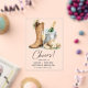 Celebrate your love story with this elegant rustic western wedding invitation featuring cowboy boots, champagne, and soft floral details.