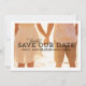 This rustic, whimsical save the date postcard features the text "Kindly save our date" in the middle of the card, overlaying a large photo. Customize with your wedding details and favourite photo. Additional photos and text can be added to the back of the card.