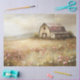 This charming painting depicts a rustic white barn nestled in a field of vibrant wildflowers, evoking a peaceful countryside atmosphere. The soft brushstrokes and warm tones create a nostalgic, farmhouse-style scene perfect for country and rustic decor.