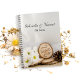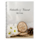 The natural Rustic White Daisies Woodland Wedding Spiral Notebook can be personalized to create a one of a kind advice book for the newlywed bride and groom or guest book for their woodsy inspo marriage ceremony. This charming custom outdoor woods or forest theme nuptial note book features a nature style photograph of a bouquet of white daisy flower blossoms, wood slice with the word LOVE burned on it, brown pine cone and white bridal veil with a burlap and white satin background.