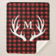 Rustic White Deer Antlers & Buffalo Check Plaid Sherpa Blanket