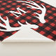 Rustic red and black buffalo check plaid background print with white deer antlers silhouette framing your family's monogram letter in white.