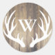Rustic White Deer Antlers Farmhouse Initial Letter Classic Round Sticker