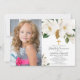 Rustic white floral magnolia first communion photo invitation