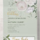 Rustic White Floral Peonies on Sage Green QR Code All In One Invitation