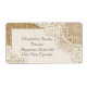 Elegant white lace on burlap shabby chic wedding label featuring white lace on linen natural burlap or hessian that covers two corners of a white rectangle with beige burlap border. Text in brown. Note that lace and burlap are all “printed on” and not real fabric. This elegant, shabby chic sophisticated and romantic design with a rustic essence is part of a wedding set and is perfect for a country chic or western spring, summer or fall/autumn wedding with a neutral colour palette.
