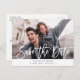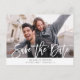 simple photo wedding save the date card design with white lettering. Feel free to personalize the photo and text.