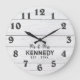 Wedding clock with a rustic white pallet wood background. Personalize the farmhouse style clock with last name of the new couple for an unique wedding anniversary gift.