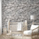 This rustic wallpaper features a white stone brick pattern. The perfect accent to your home decor.
