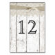 Rustic cottage chic wedding table number card done in a distressed white washed wood look. Graphics of lovely ivory crocheted lace, at the top, and an ivory double ribbon tied in a knot runs across the width of the lace header. The large black number is ready to personalize for each table at your reception. Matching products available.