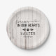 Rustic pet memorial paper plates printed with a white painted wood look. Forever in our hearts written in white, with a cute heart. Add your pet's name and years living.