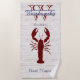 Rustic Weathered White Wood Nautical Navy Blue and Maroon Burgundy Red Lobster, Family monogram, and date established: Beach Towels easy to personalize templates. Perfect for Lakehouse, beach house, or the pool