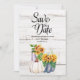Rustic White Wood Watercolor Pumpkin Sunflower Save The Date