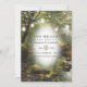 Cool mason jar fairy lights against a realistic woodland scenario wedding save the date cards.