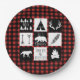 Rustic paper plates perfect for a lumberjack style wilderness baby shower. They feature a red and black plaid background and wilderness animals theme.
