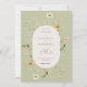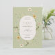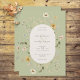This wedding invitation features an delicate sage green background, which exudes a sense of sophistication and richness. The soft sage green hue creates a captivating backdrop that sets the tone for a memorable celebration. At the centre of the invitation, an oval-shaped text frame stands out, providing a graceful focal point. The frame is beautifully crafted, exuding a sense of refinement and elegance. Its shape adds a touch of uniqueness, capturing the attention of the recipients. Surrounding the text frame, delicate and rustic watercolor wildflowers are artistically arranged. These charming blooms, depicted in soft hues, evoke a sense of natural beauty and tranquillity. The watercolor technique gives them a gentle and ethereal appearance, enhancing the overall romantic ambiance of the invitation. The combination of the sage green background, the oval text frame, and the rustic watercolor wildflowers creates a visually stunning wedding invitation that exudes elegance and a touch of whimsy. It sets the stage for a romantic celebration filled with natural beauty and heartfelt moments. Created by Simply Farmhouse Press, it's part of the Rustic Wildflower Frame Sage Green wedding suite.