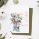 Celebrate your special day with this charming Rustic Wildflower Watercolor Floral Wedding Invitation, a perfect choice for spring, garden, or countryside-themed weddings. Featuring a beautifully painted watercolor bouquet of wildflowers in soft pink, lavender, white, and green hues, this elegant design is set in a rustic pitcher and jar for a vintage-inspired touch. The floral artwork exudes a fresh, romantic vibe that complements outdoor or barn weddings.