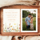 This design combines elegance and whimsy, pairing minimal modern text with a row of delicate watercolor wildflowers perfect for boho-inspired weddings.