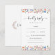 Experience modern sophistication with this watercolor responce RSVP card crafted for a rustic spring or summer wedding. The design features an elegant and delicate colorful wildflower bloom wreaths, complemented by the inclusion of the bride and groom monogram on the back. Elevate your wedding details with this refined and personalized touch.