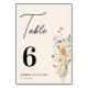 Rustic Wildflowers Cream Script Boho Wedding Table Number