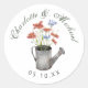 Seal your invitation envelopes with these rustic wildflower labels. Featuring watercolor meadow flowers, such as red poppies, blue cornflowers and grass in a water can. Suitable sticker for the garden wedding.
