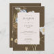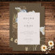 Announce your wedding with a touch of rustic elegance. Our captivating wedding invitation features a vibrant arrangement of wildflowers and ferns, meticulously hand-drawn and reminiscent of pressed botanical treasures. Rich colours like tan, yellow, cream, blue, and sage green stand out beautifully against a rich chocolate brown background frame. Your wedding details are showcased in a crisp cream text box, ensuring clarity and elegance. This captivating design captures the essence of a wildflower meadow, offering a unique and memorable way to celebrate your love story. Created by Simply Farmhouse Press.
