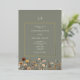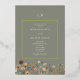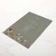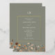 Bring rustic elegance to your wedding with this sage green invitation, adorned with watercolor wildflowers and framed by a shimmering real gold foil border. The earthy floral design at the bottom adds a warm autumn or countryside feel, while the clean serif and handwritten fonts offer a modern, refined touch. Perfect for rustic, fall, outdoor, or botanical-themed weddings. Fully customizable with your names, date, and location details. A beautiful blend of organic charm and luxury.