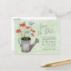 Rustic save the date postcard featuring a bouquet of watercolor wildflower such as poppies, cornflower and grass in a water can.