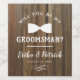 Rustic label that says "Will you be my groomsman" with a bowtie and calligraphy accents.