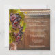 A romantic wedding invitation featuring a wine barrel framed by lace and a rope, with a vine and grapes . This invitation has a matching RSVP card.