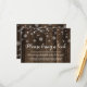 Rustic winter themed baby shower book request card. This trendy design features string lights and snowflakes on a dark wood background.