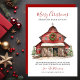 This watercolor rustic winter barn Christmas card with a festively decorated barn sprinkled with snow and surrounded by pine trees would be perfect to send from your farm to friends and family. The message is customizable and the templates are super easy to use. In seconds you can see your unique Christmas cards.