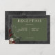 Introducing our enchanting winter wedding reception card, where timeless elegance meets the beauty of the season. The rich black background, artfully distressed with soft white accents, sets a captivating tone for your special day. In the dark sage green text area, your wedding reception details will shine, surrounded by a delicate cream frame that adds a touch of refinement. Embrace the spirit of winter with a breathtaking touches of lush greenery, featuring holly adorned with rich red berries, mistletoe with its delicate white berries, and the timeless allure of green pine. This winter wonderland-inspired design captures the essence of the season and invites your guests to celebrate your love in a setting that exudes natural grace and festive charm. With this design, you are sure to set the stage for a celebration filled with love and joy. Embrace the magic of winter and let your wedding be a reflection of the beauty that this season brings. It's part of the Rustic Winter Berries & Pine Black wedding suite. Created by Simply Farmhouse Press.