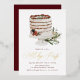 Elegant, foil holiday party invitation featuring a watercolor illustration of a frosted layer cake with red holly berries and pine greenery. "Holiday Party" is displayed in a beautiful gold foil calligraphy script. Personalize the festive holiday party invites with your party details in cranberry lettering.